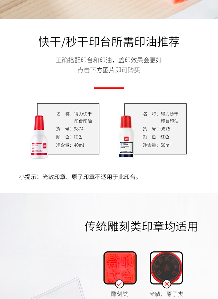 得力9868快干印臺79mm紅*12