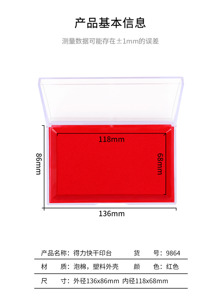 得力9864快干印臺137*88*25mm紅*12