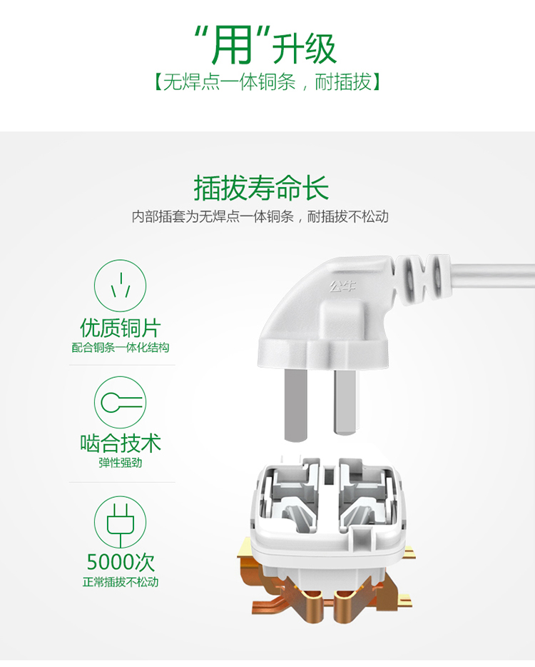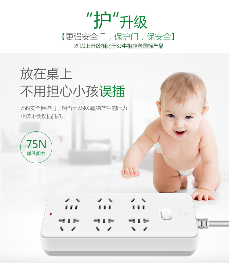 公牛GNV-UUA123插線板1.5米 3位+2位USB