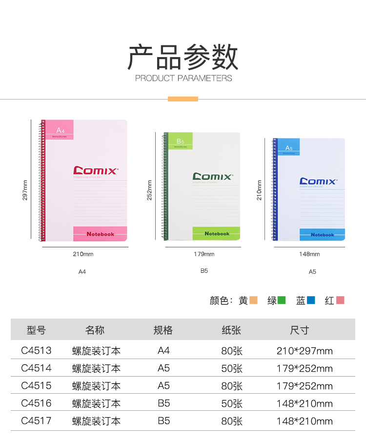 齊心C4516螺旋裝訂筆記本B5 50頁(yè)*24