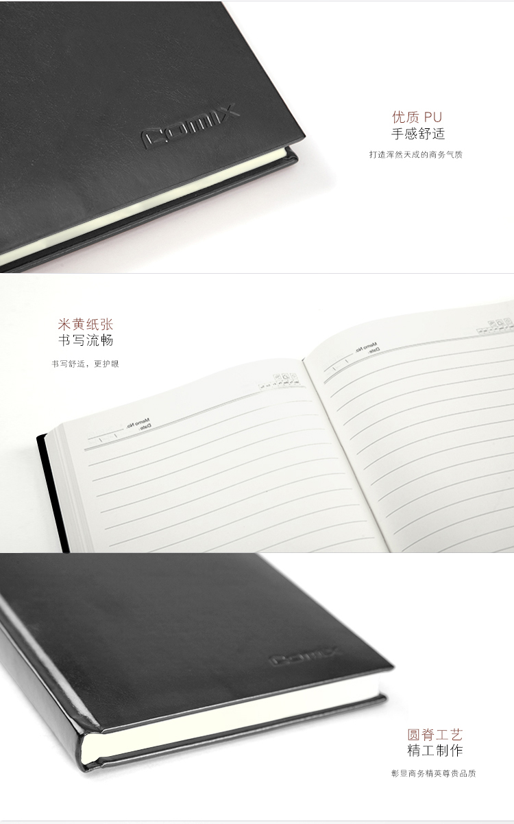 齊心C4611簡約系列皮面本黑18K 74張*12