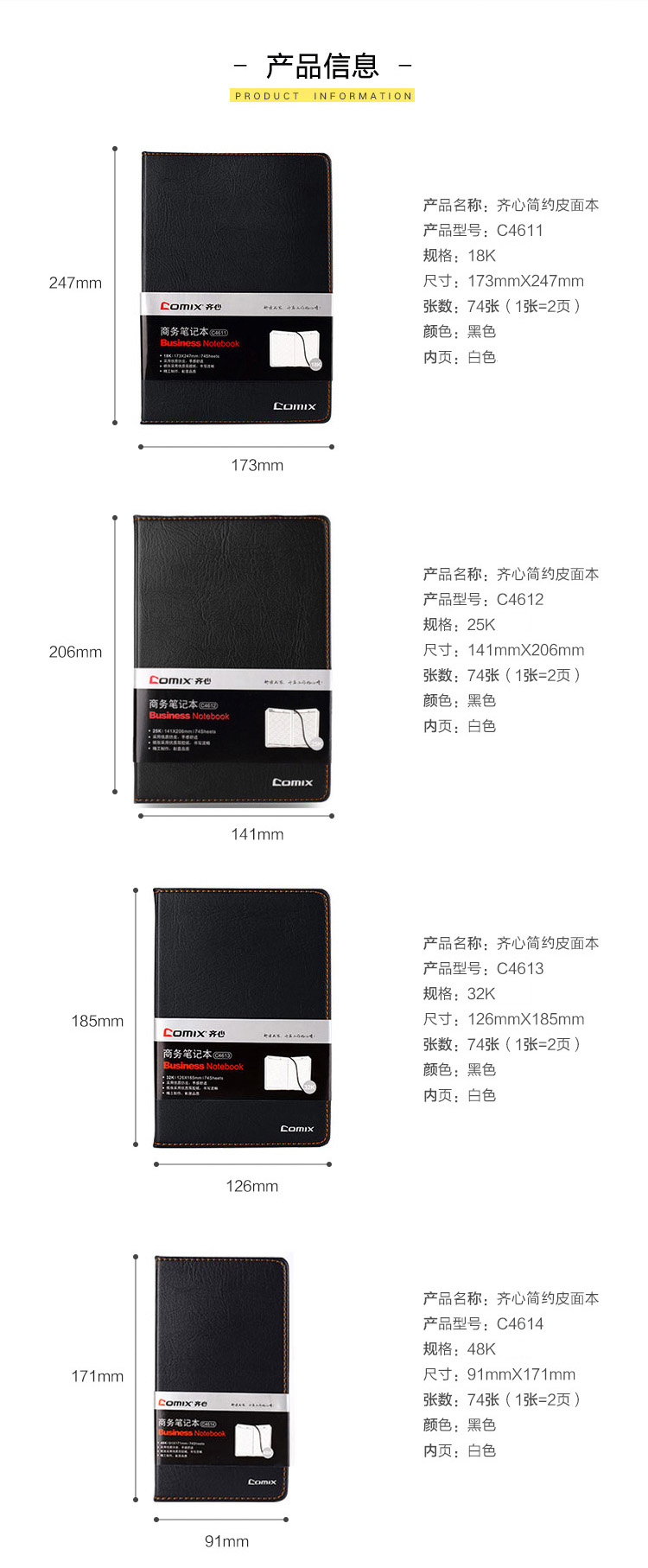 齊心C4611簡約系列皮面本黑18K 74張*12