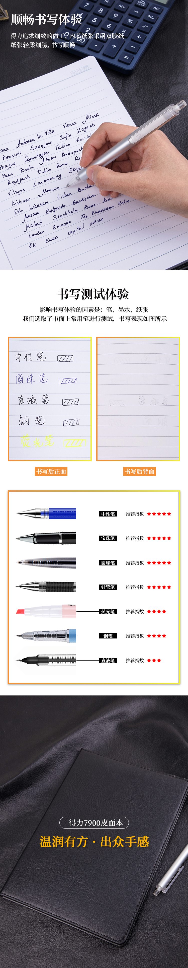 得力7900皮面筆記本-16K-80張(黑)