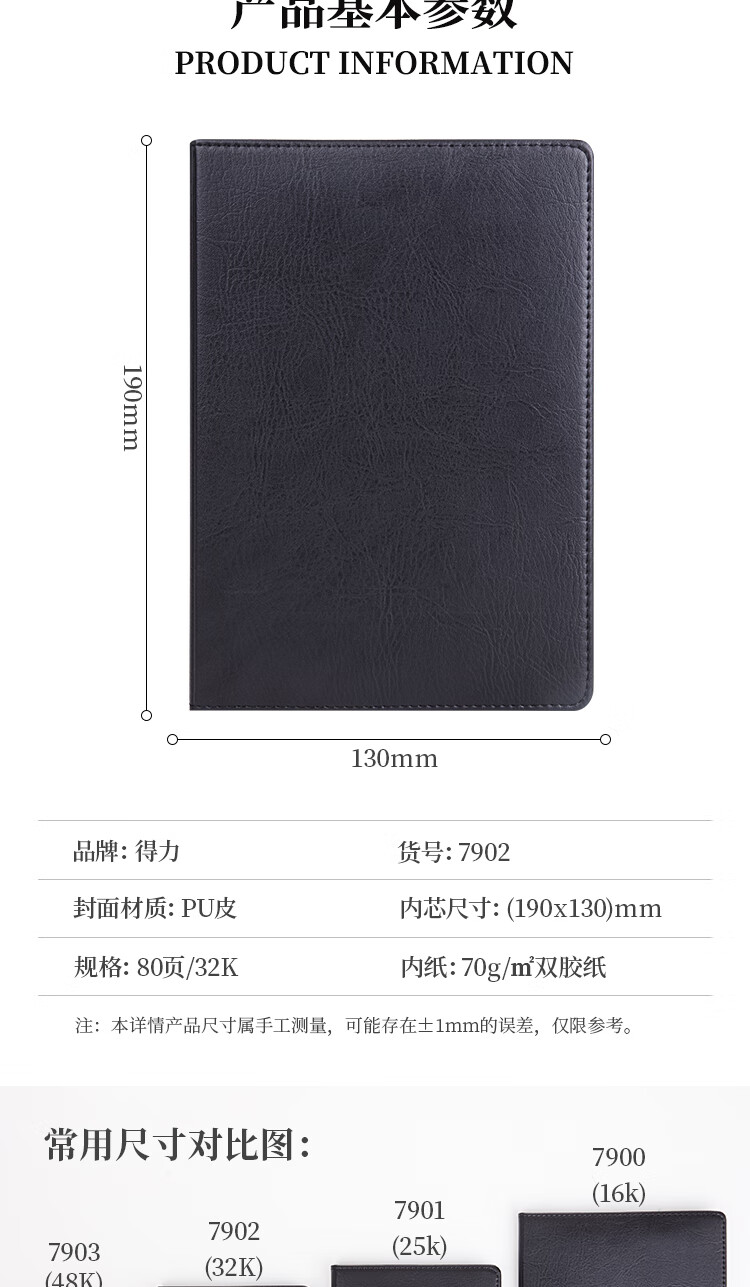 得力7912皮面筆記本(黑)-120張-32K(本)