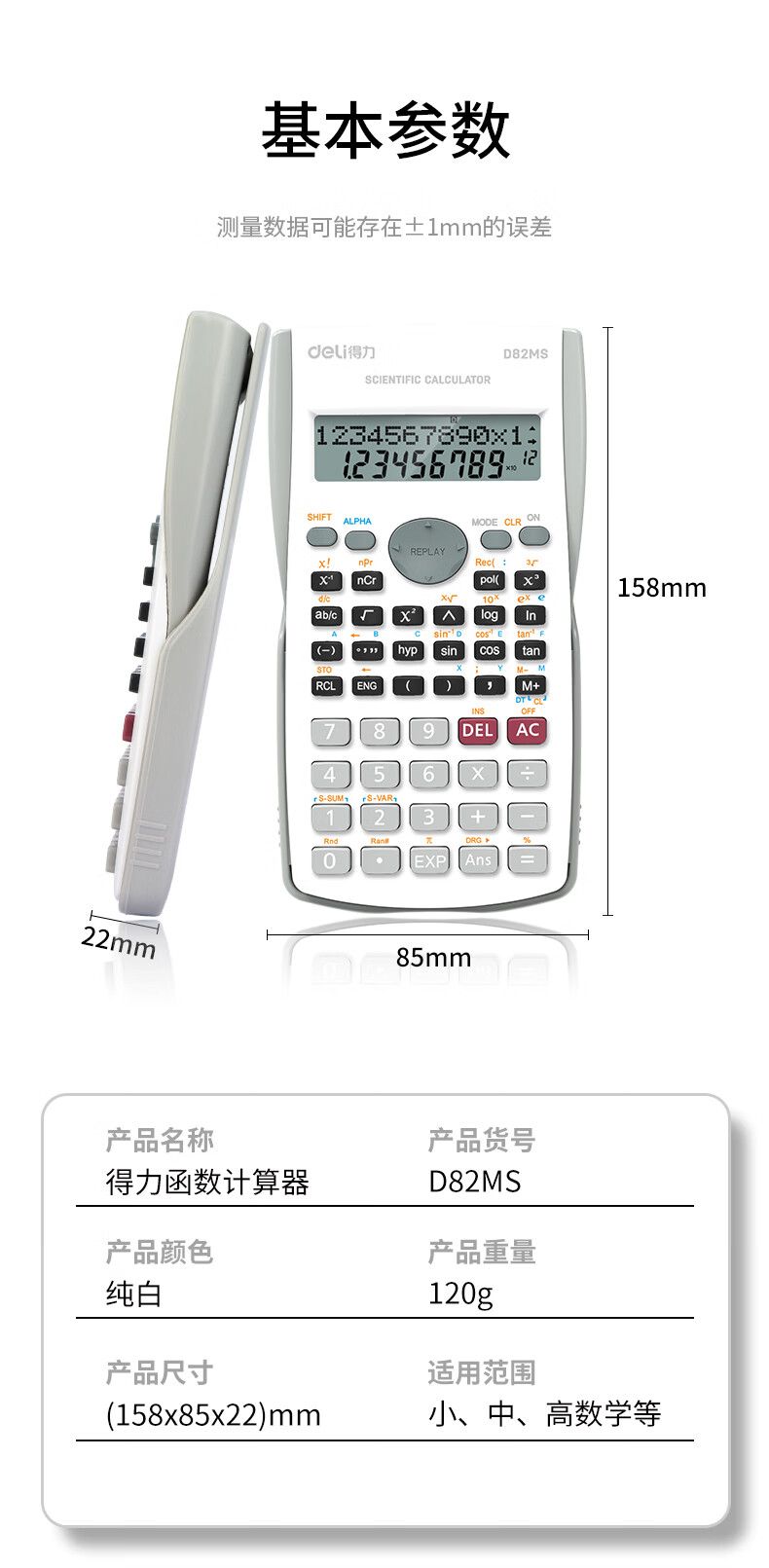 得力D82MS函數計算器(白)