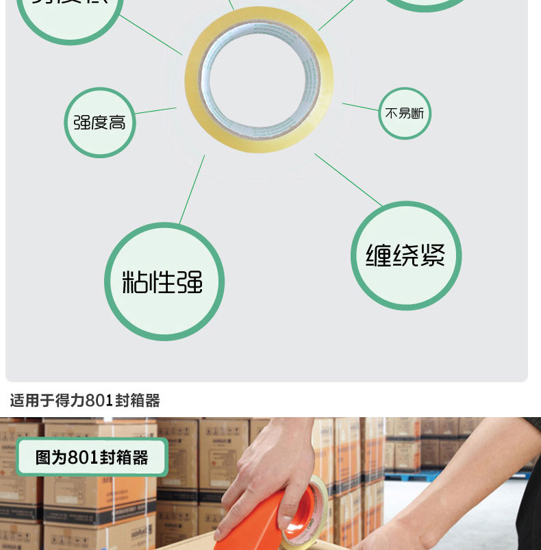 得力30325封箱膠帶60mm*100y*50um(6卷/筒)(高透)
