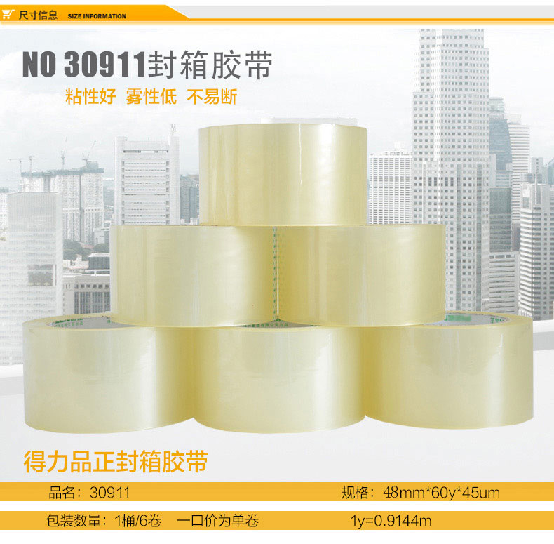 得力品正30911封箱膠帶48mm*60y*45um(6卷/筒)(普透)
