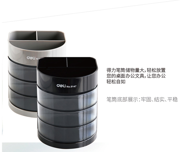 得力9147實色三層多功能筆筒