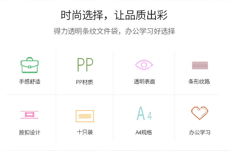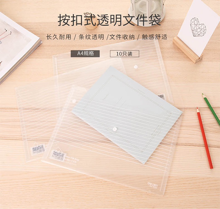 得力5501 A4按扣透明文件袋*10