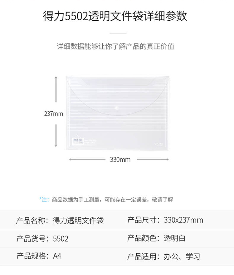 得力5502文件袋(透明)*10
