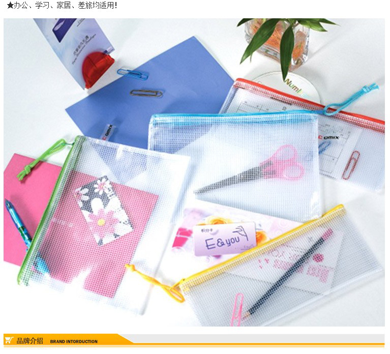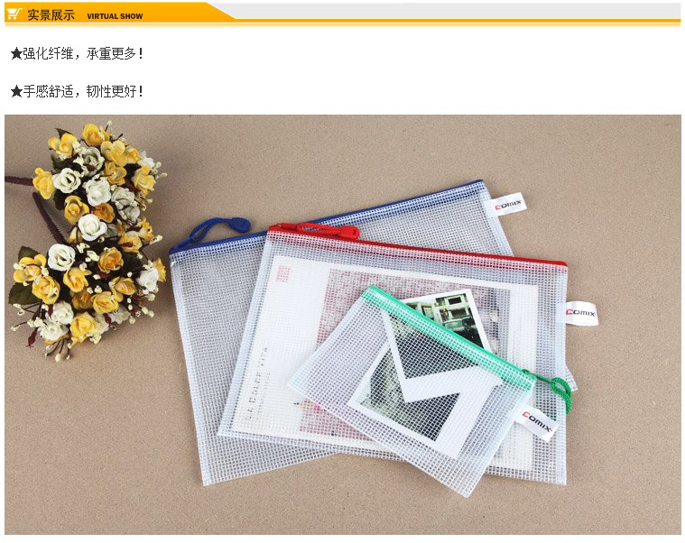齊心A1154網(wǎng)格拉鏈袋A4*10 配色