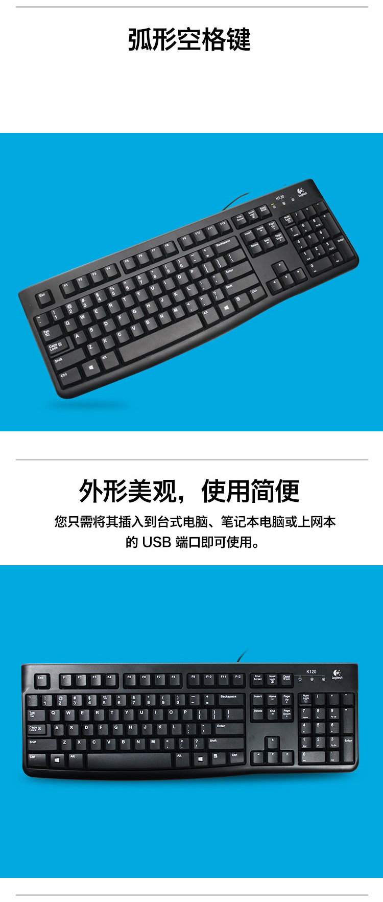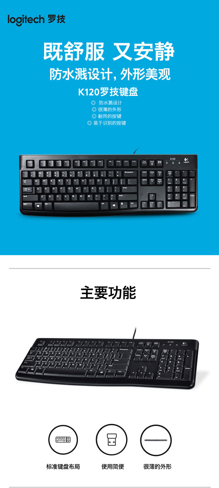 羅技K120有線鍵盤USB