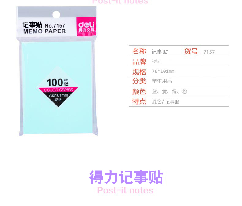 得力7734記事貼(淡黃)76*101mm(包)*12