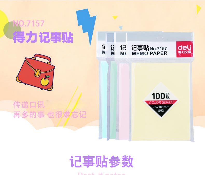 得力7735記事貼(淡黃)76*126mm(包)*12
