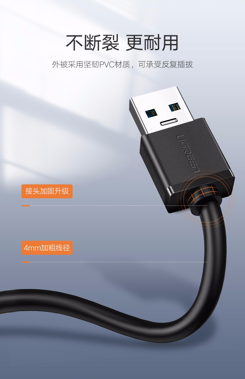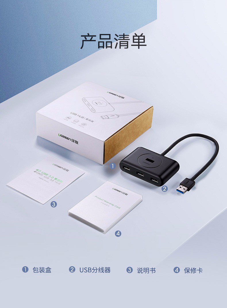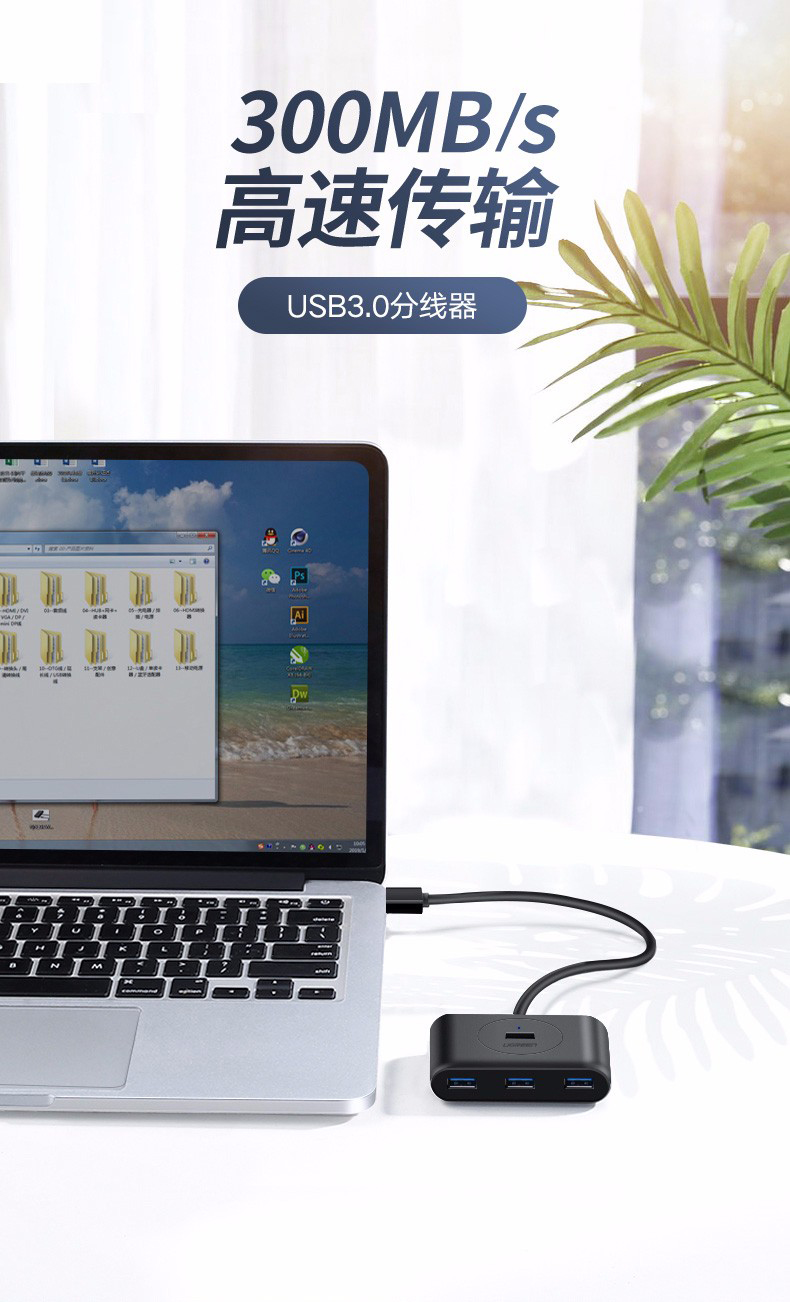 綠聯(lián)USB3.0分一拖四集線器延長線1.5米白 30221