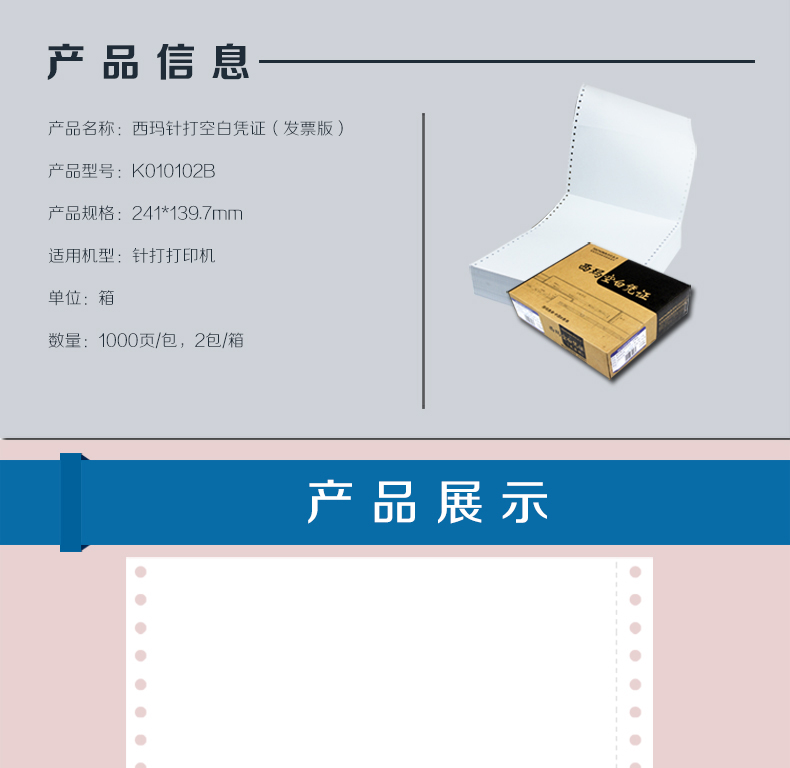 西瑪K010102B/70g針打發票版空白憑證紙
