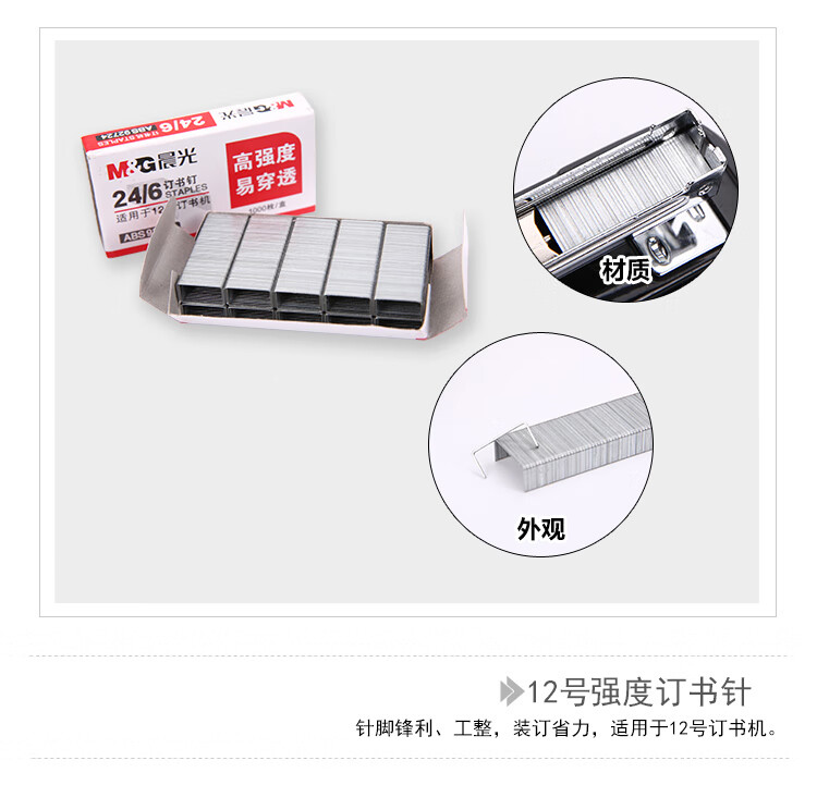 晨光訂書釘高強12號ABS92724(24/6)(1000枚/盒)