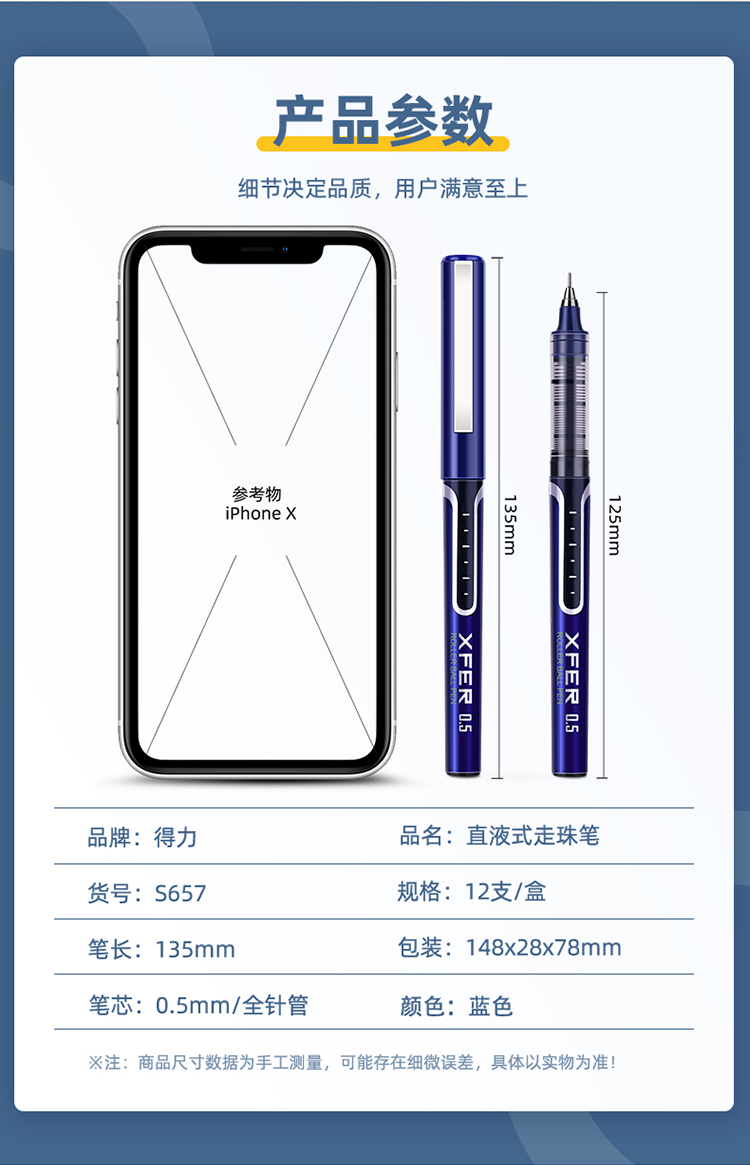 得力S01中性筆0.5mm彈簧頭(墨藍)*12