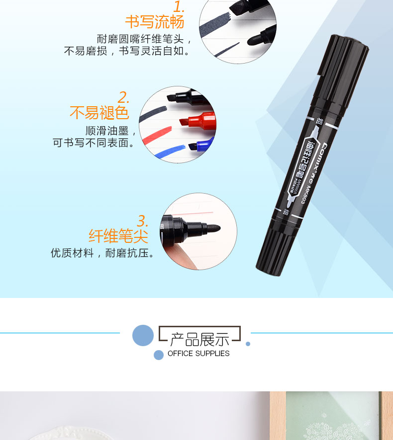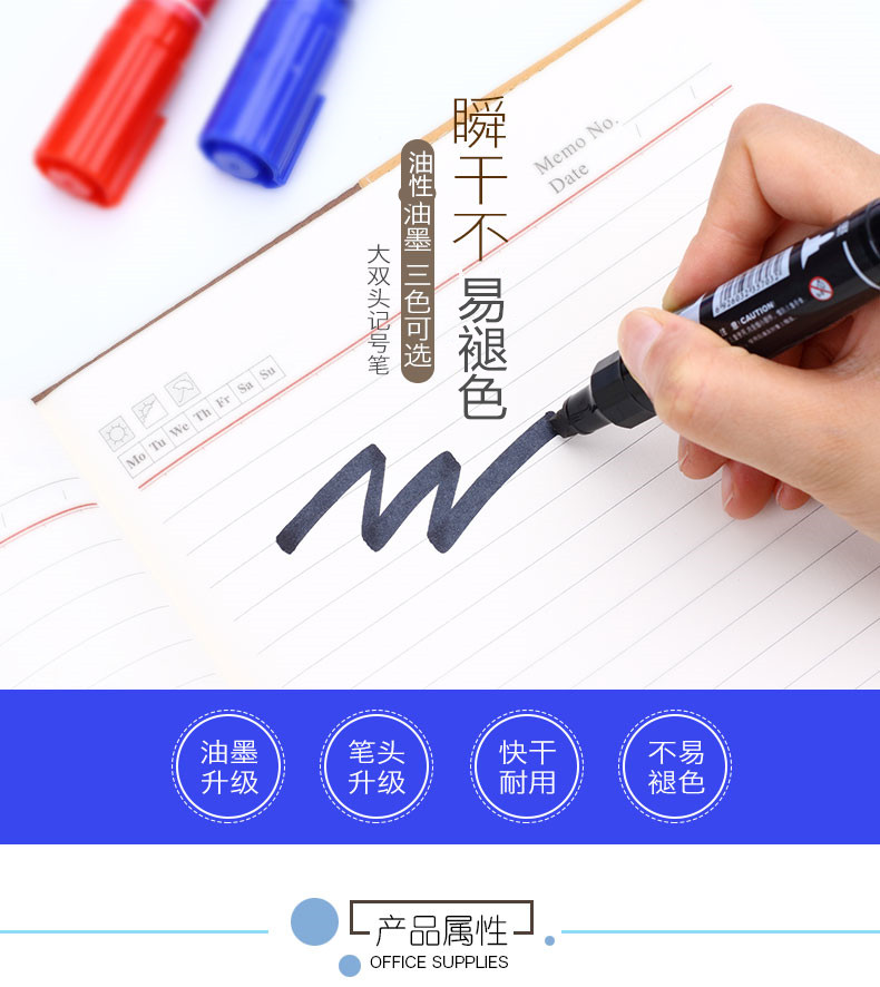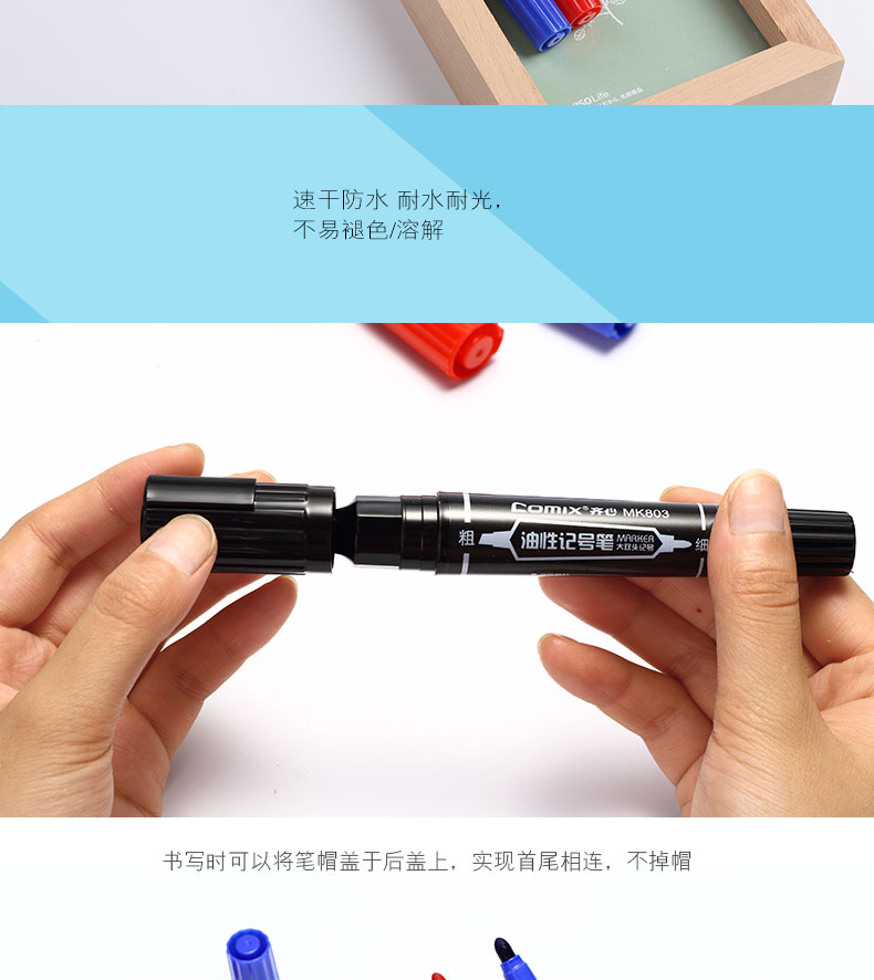 齊心MK804小雙頭記號筆0.5-2mm藍*12