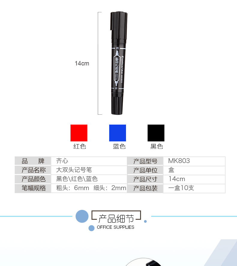 齊心MK803大雙頭油性記號筆2-6mm藍*10