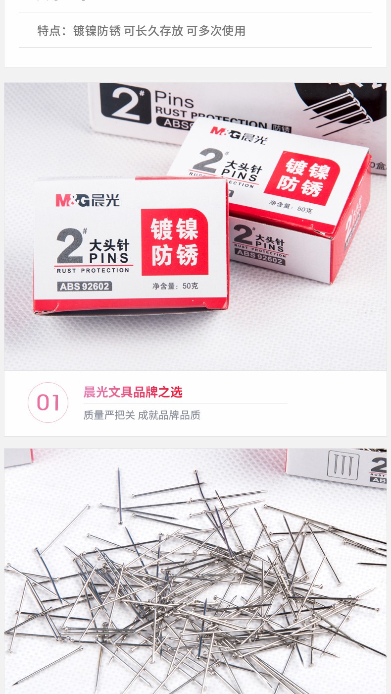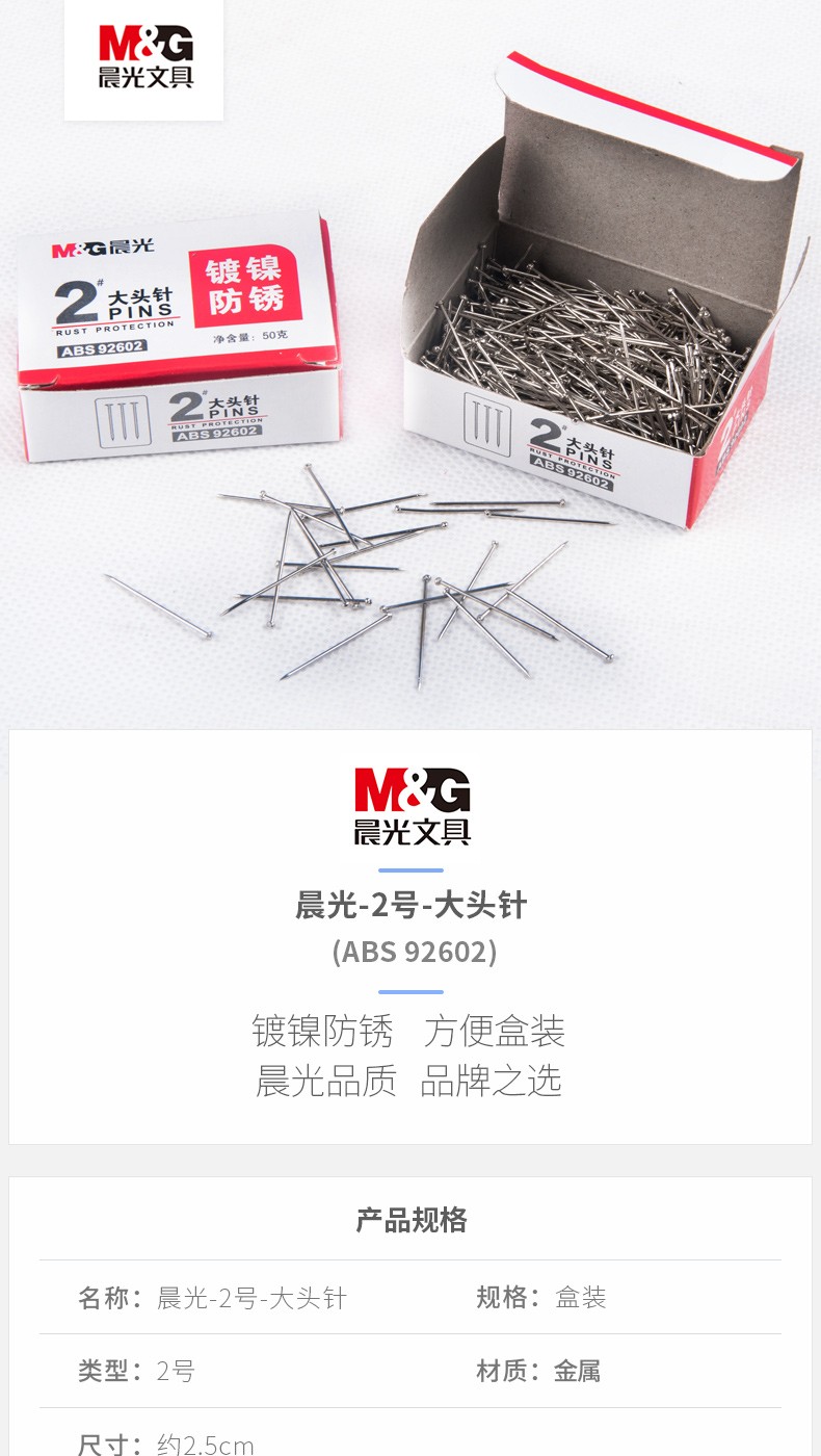 晨光2號大頭針紙盒裝ABS92602(50枚/盒)