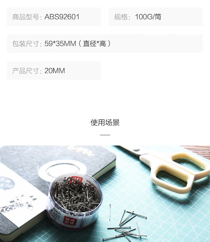 晨光3號大頭針PVC筒裝ABS92601(100枚/盒)