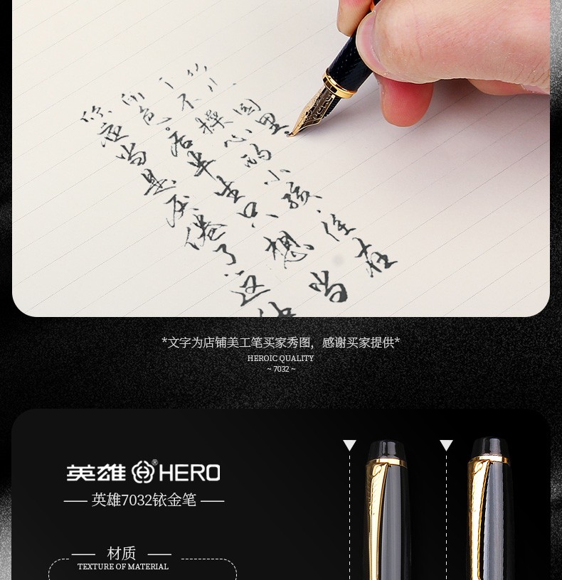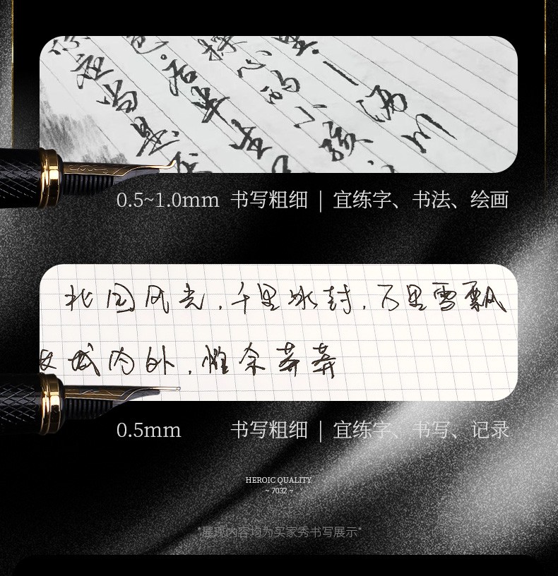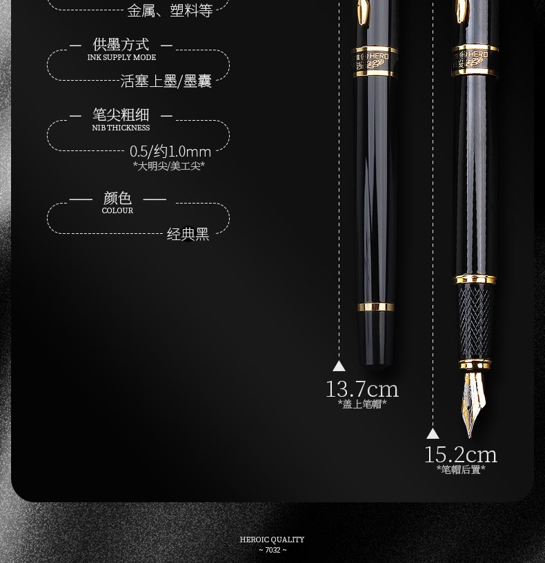 英雄7032黑色依金鋼筆(明尖)