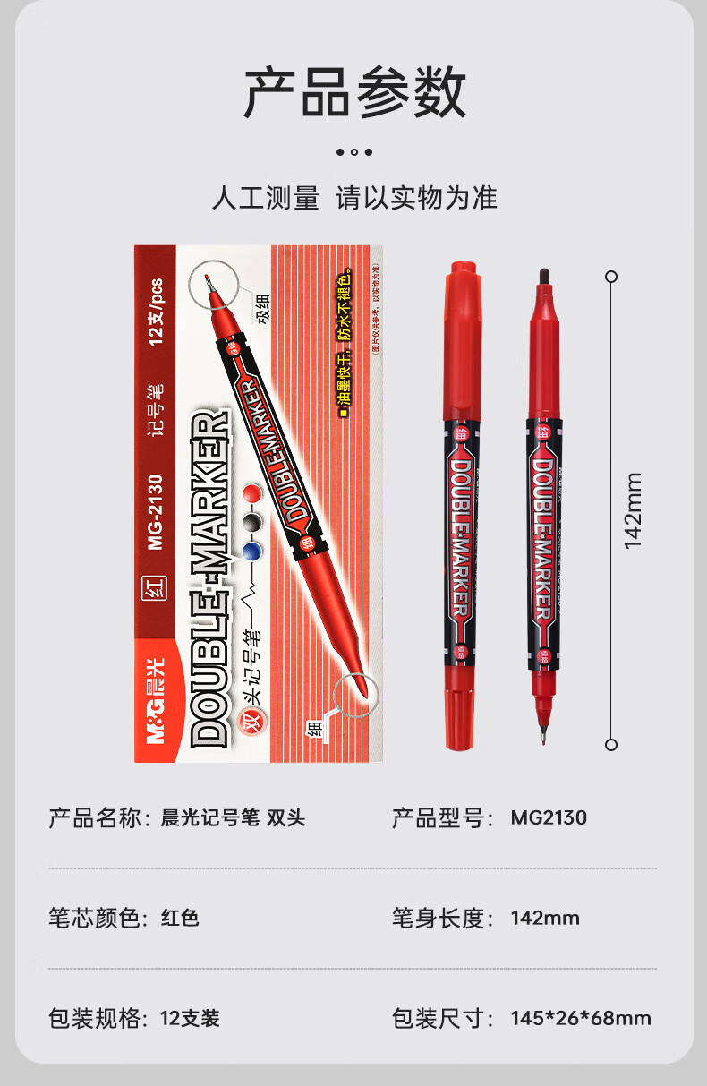 晨光細桿小雙頭記號筆MG2130紅*12