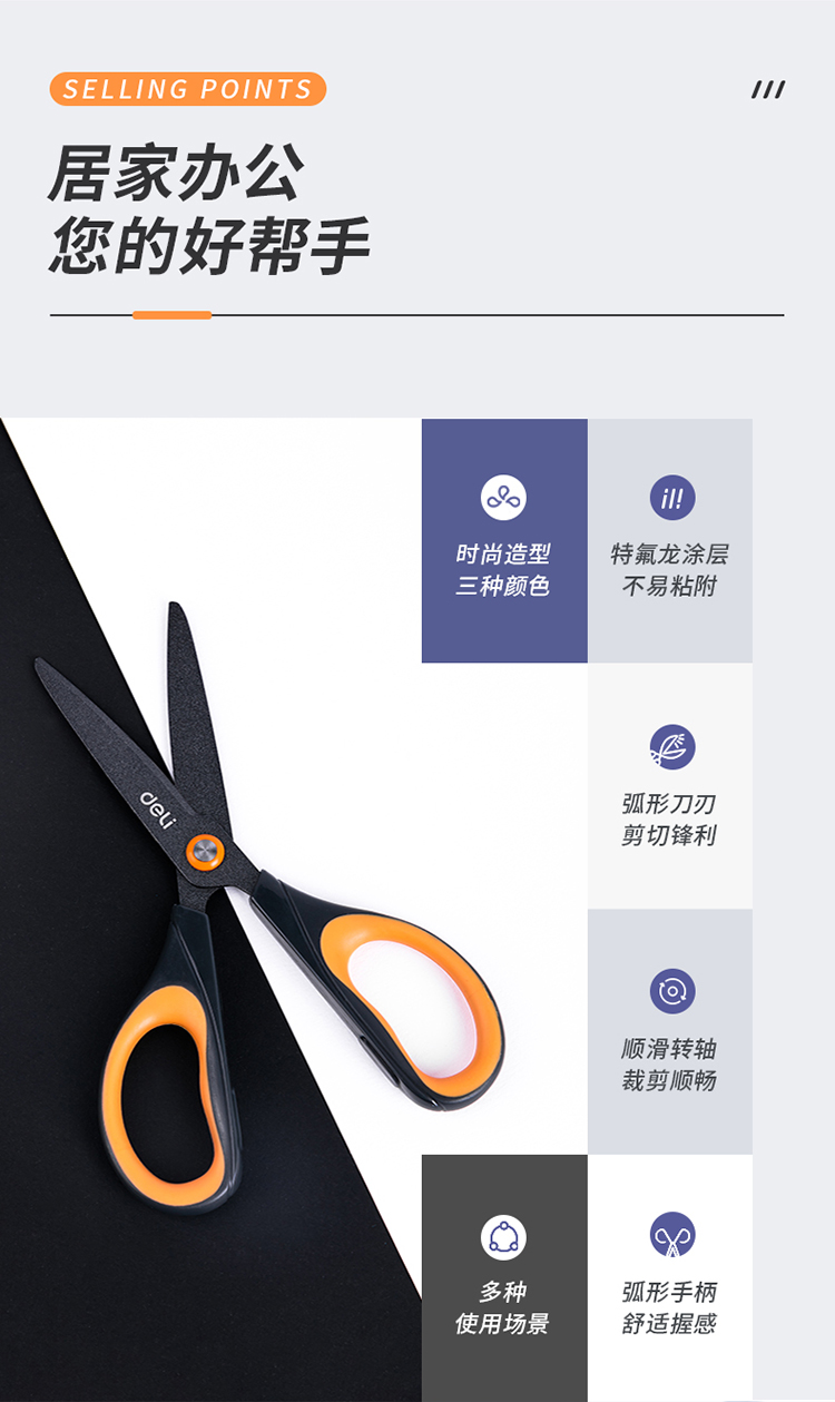 適用類(lèi)型 : 得力6055特氟龍剪刀(黑)