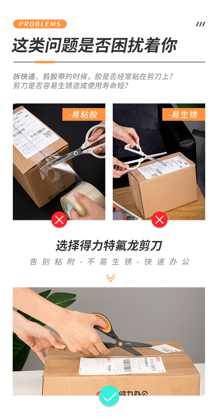 得力6055特氟龍剪刀170mm*12