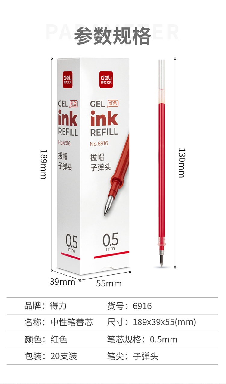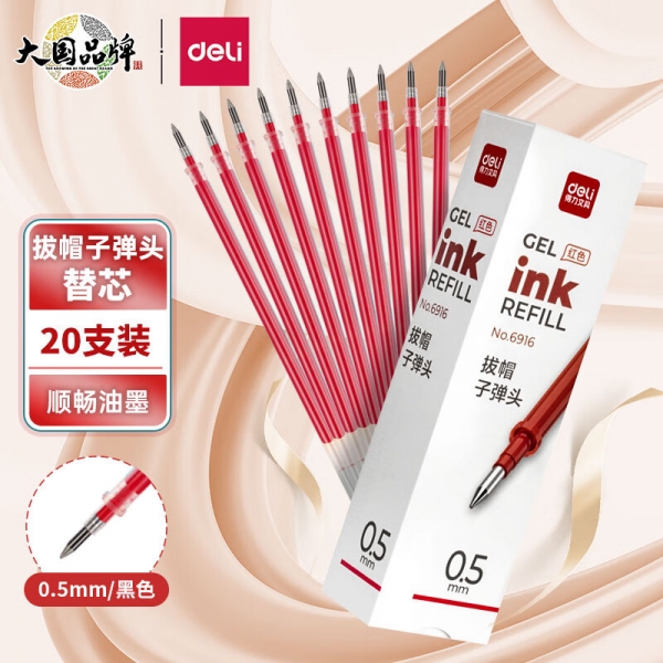 得力6916通用型中性筆替芯0.5mm*20紅色