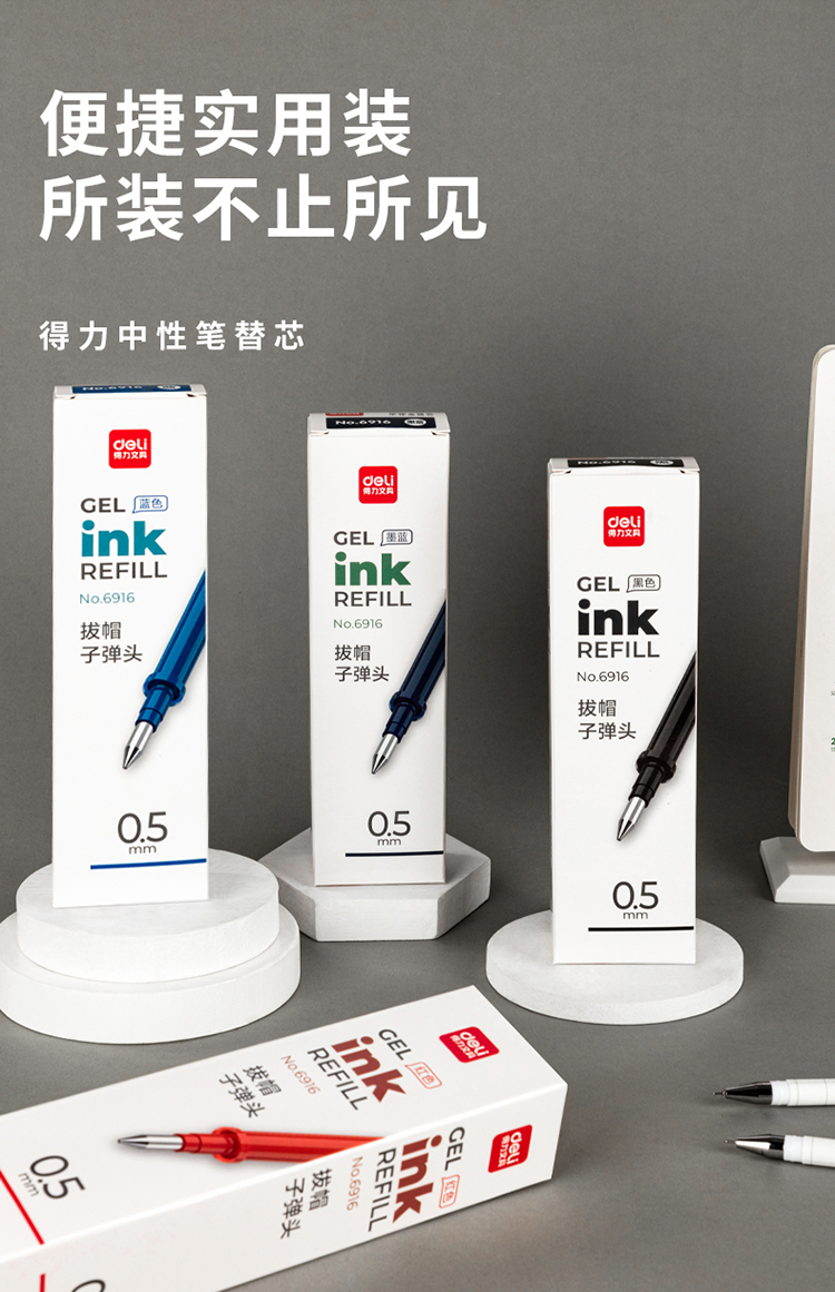 得力6906按鍵式中性筆替芯0.5mm藍色*20支