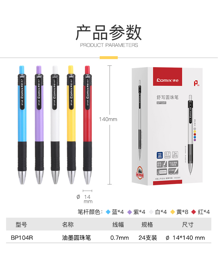 齊心BP104R舒寫圓珠筆0.7mm藍(lán)*24