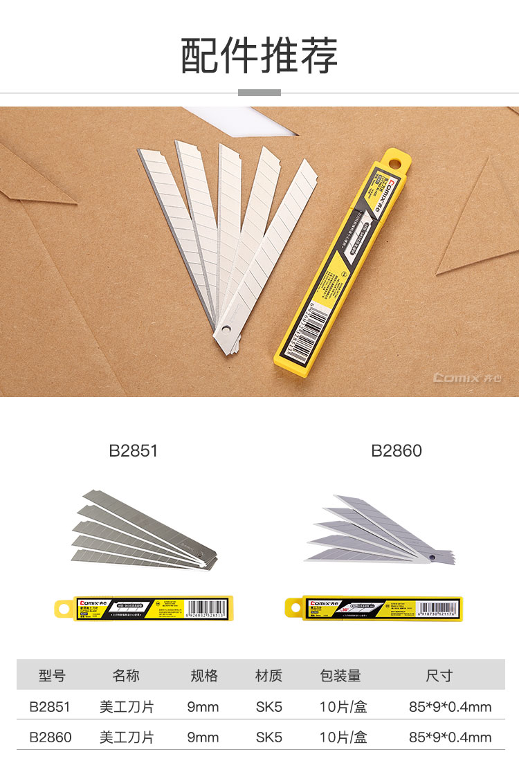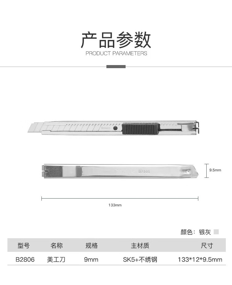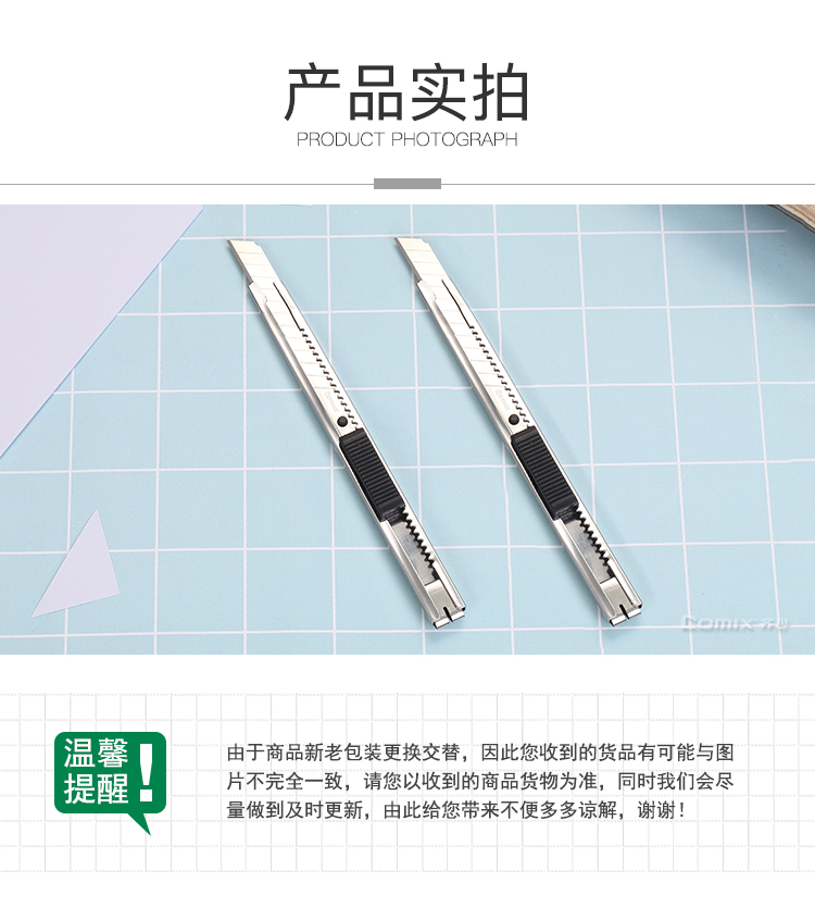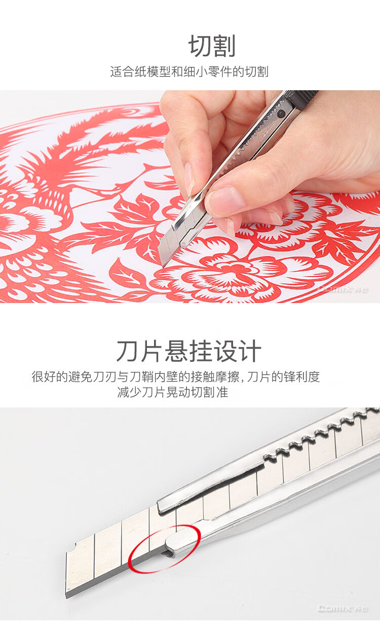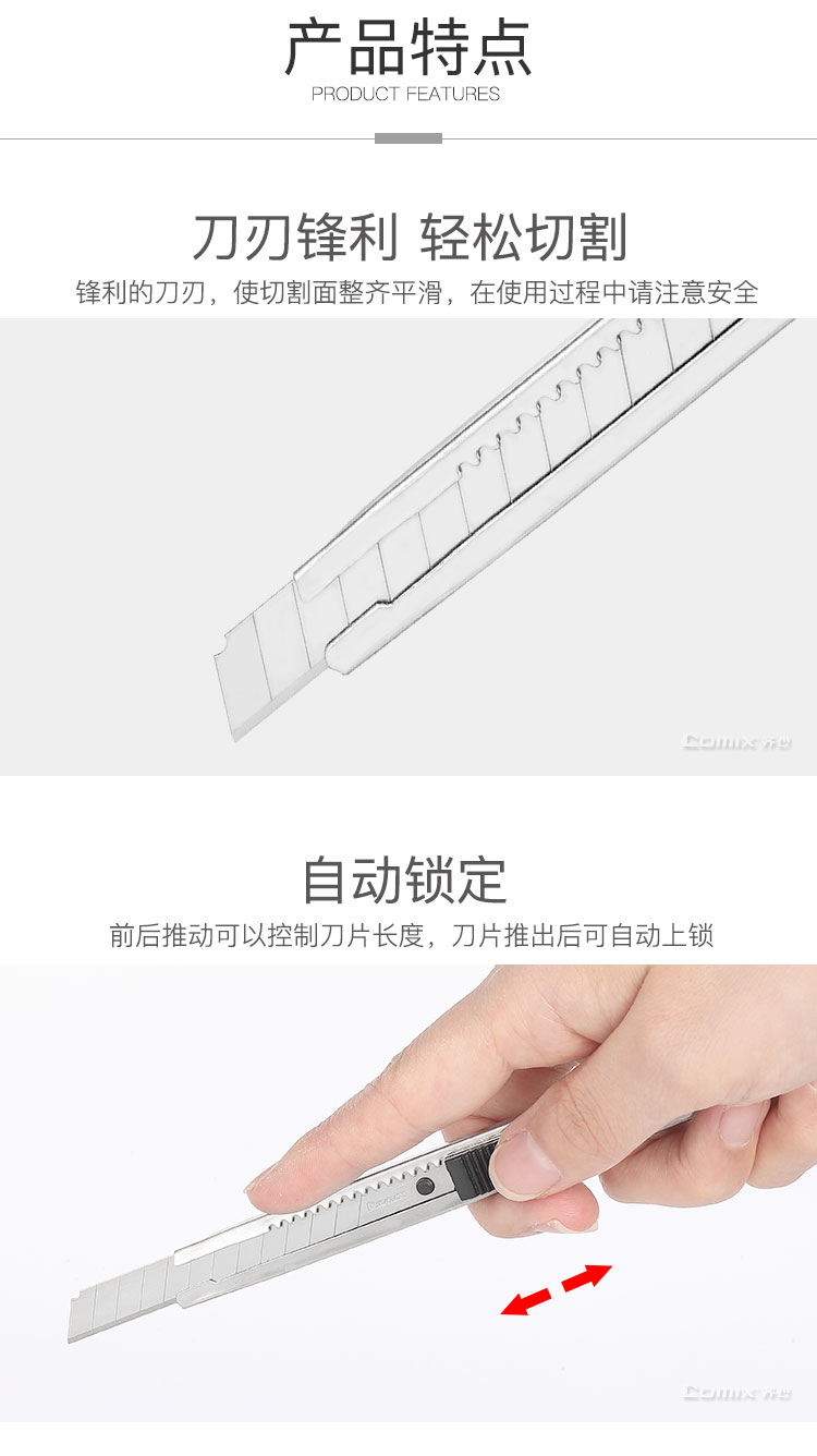 適用類型 : 齊心B2806金屬美工刀9mm鎳色