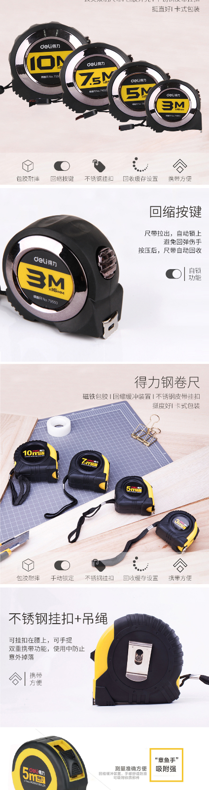 得力8210鋼卷尺10m*10