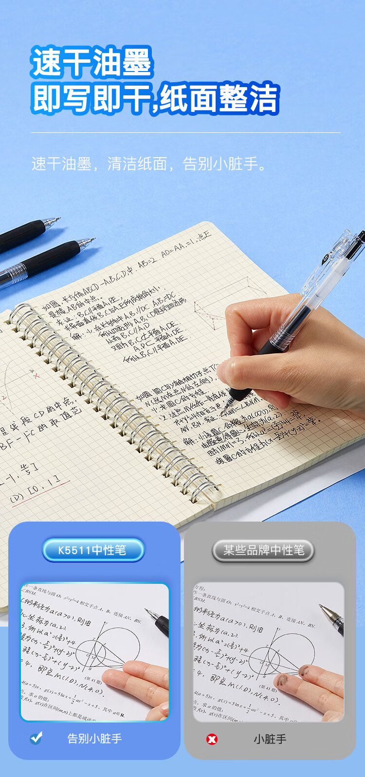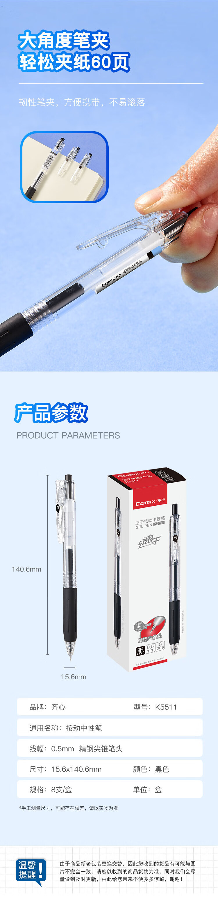 齊心K5511速干按動中性筆0.5mm黑*8支