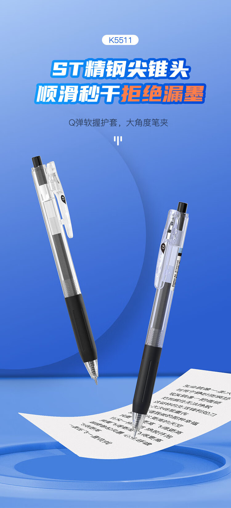 齊心K3511舒適按動中性筆0.5mm藍*12