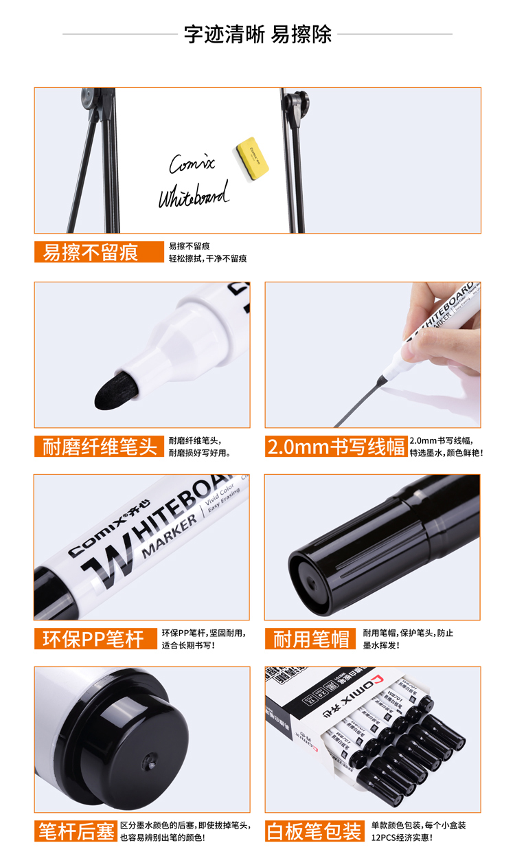齊心WB701易擦白板筆黑色*12