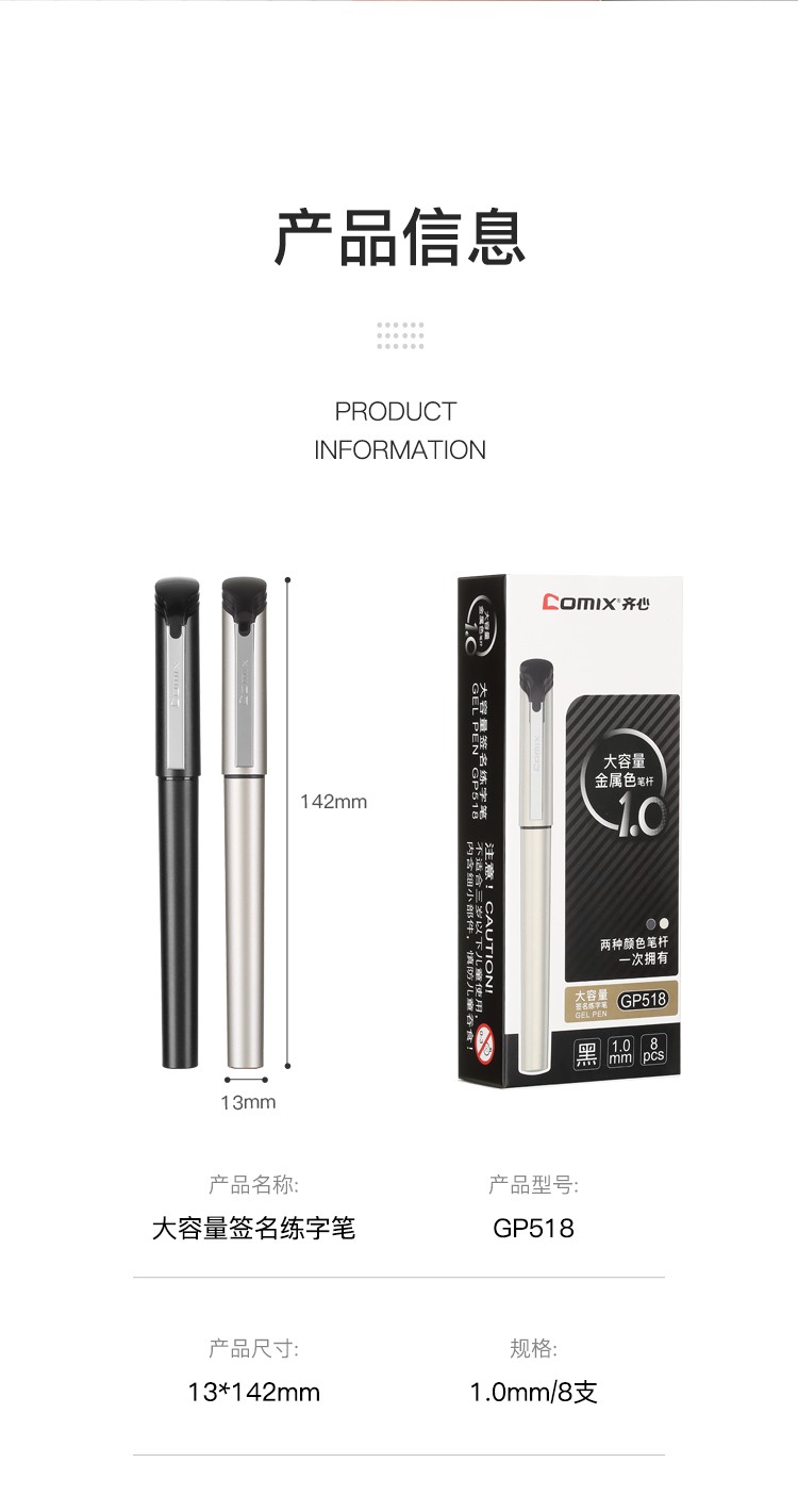 齊心GP518大容量簽字筆1.0mm*8