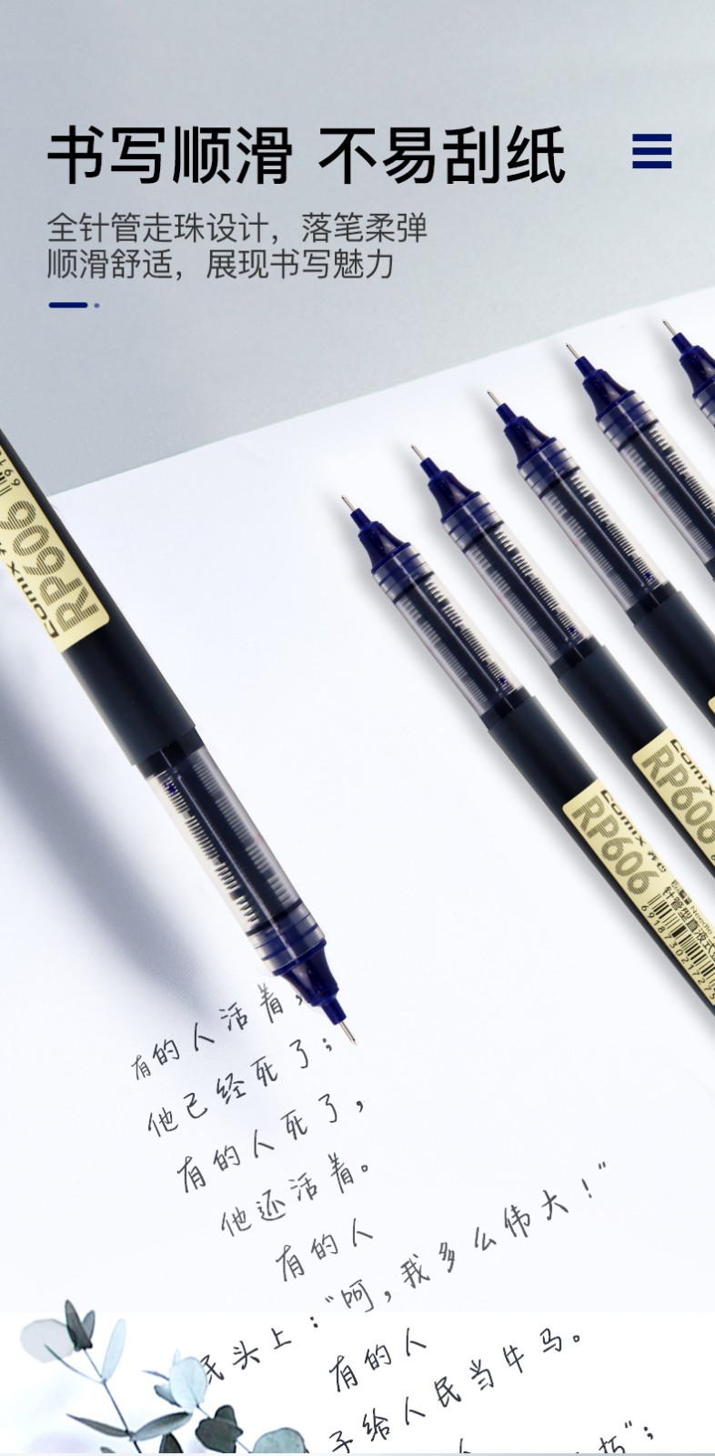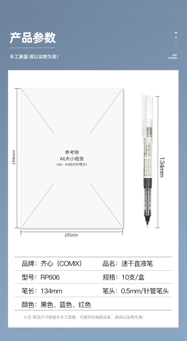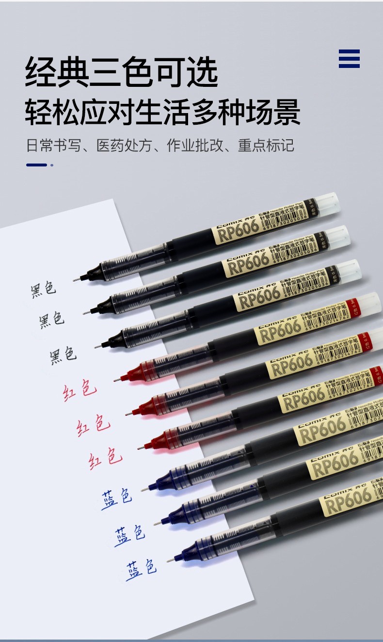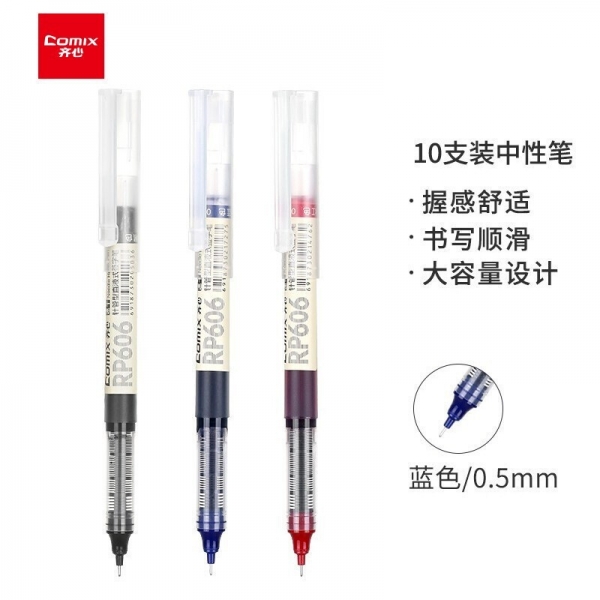 齊心RP606直液式全針管簽字筆藍0.5mm*10
