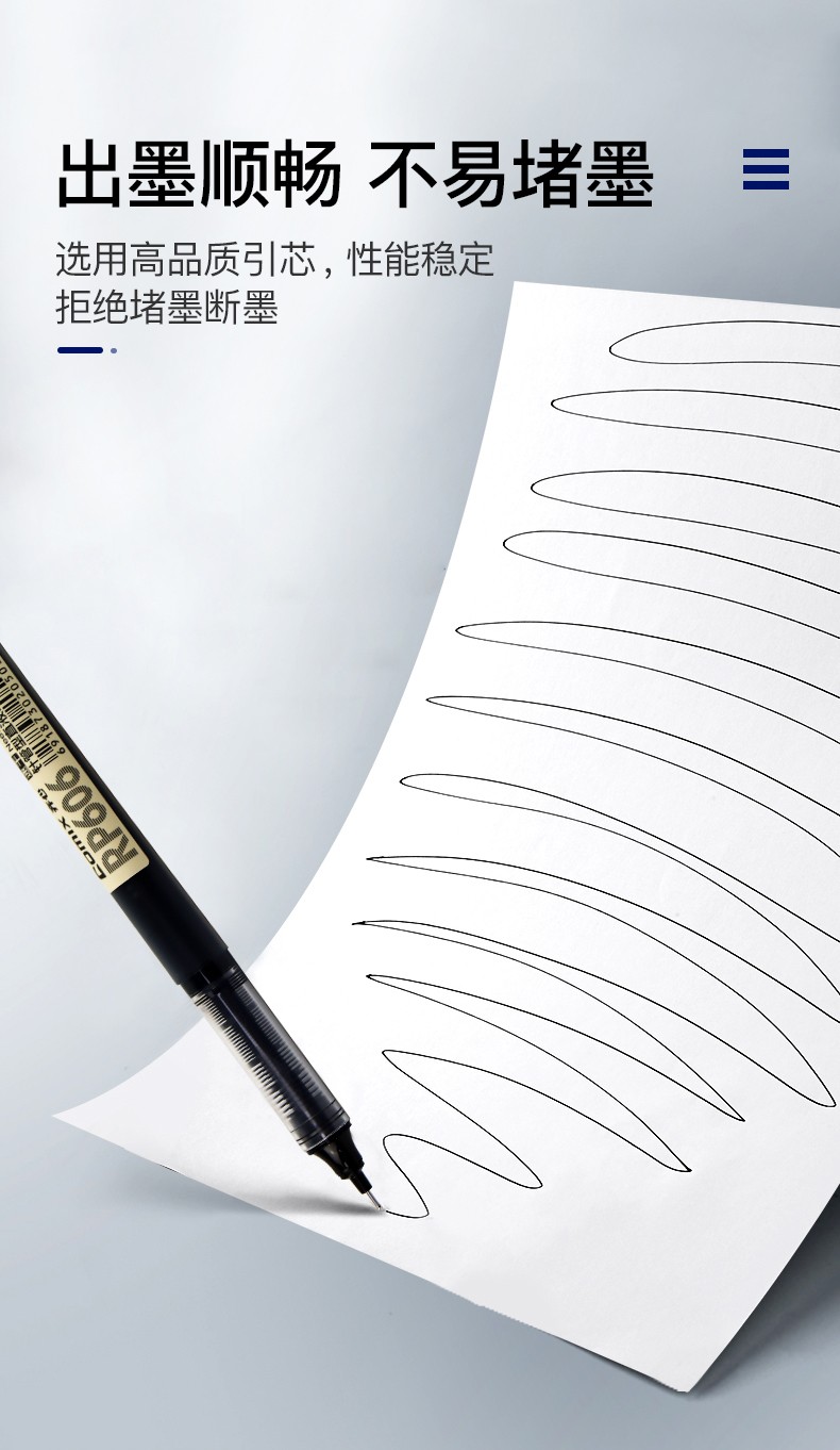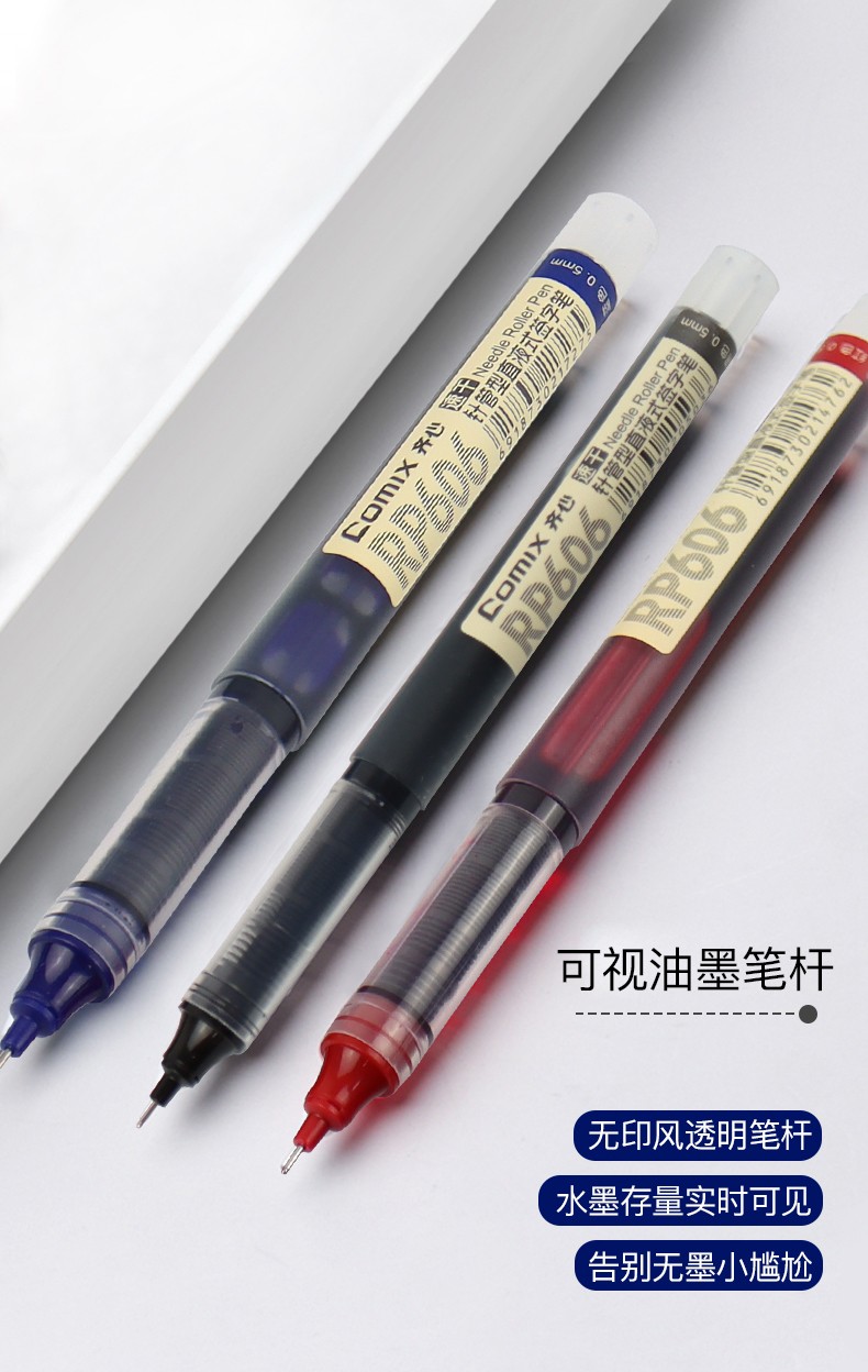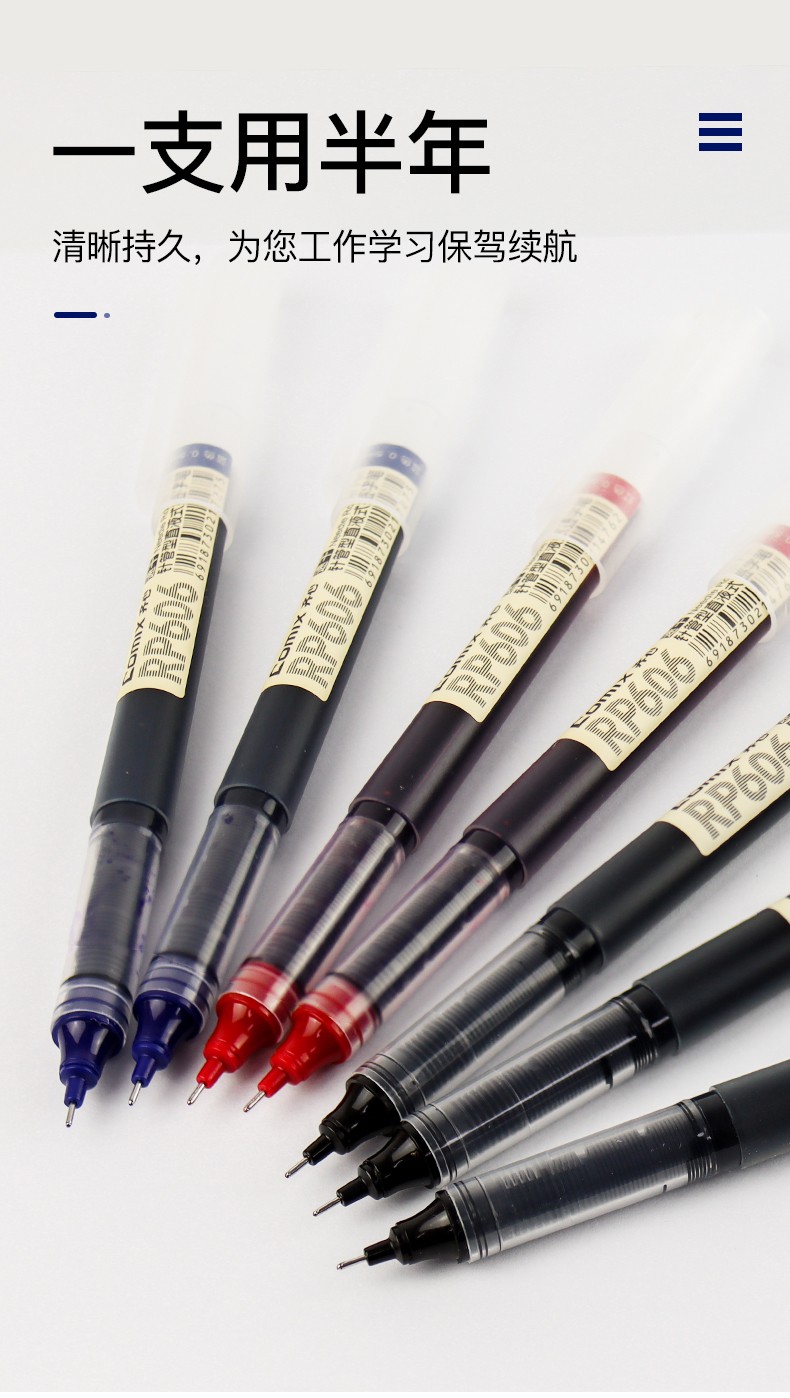 齊心RP606直液式全針管簽字筆黑0.5mm*10