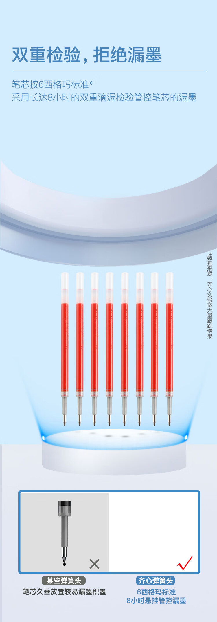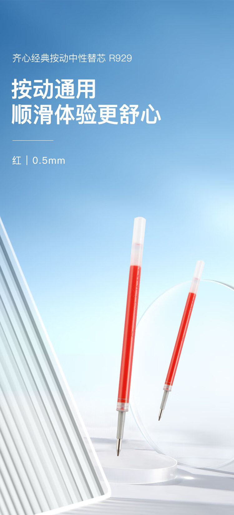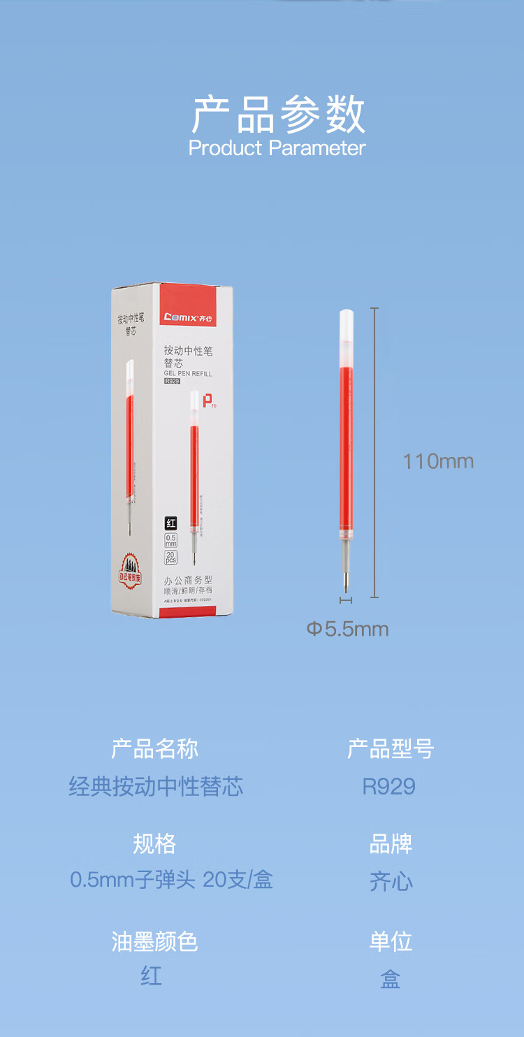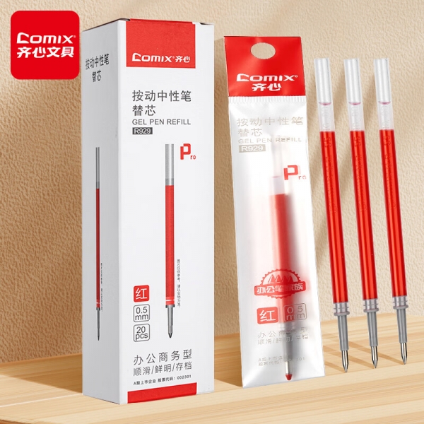 齊心R929經典按動中性筆替芯紅0.5mm*20