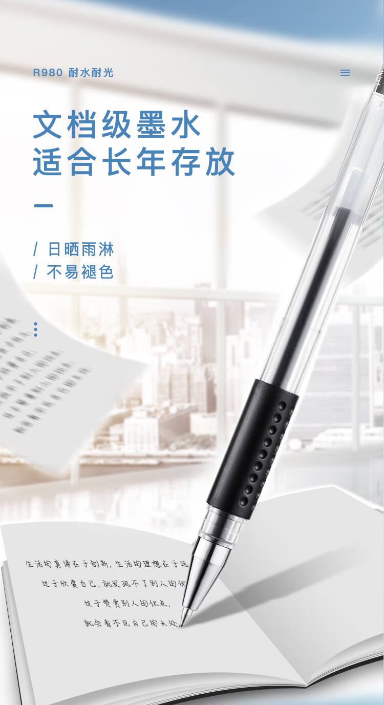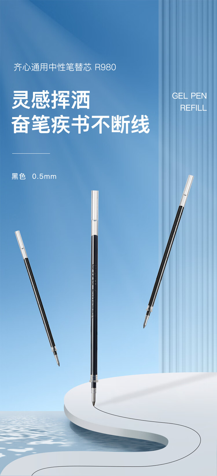 齊心R980通用中性筆替芯0.5黑色*20