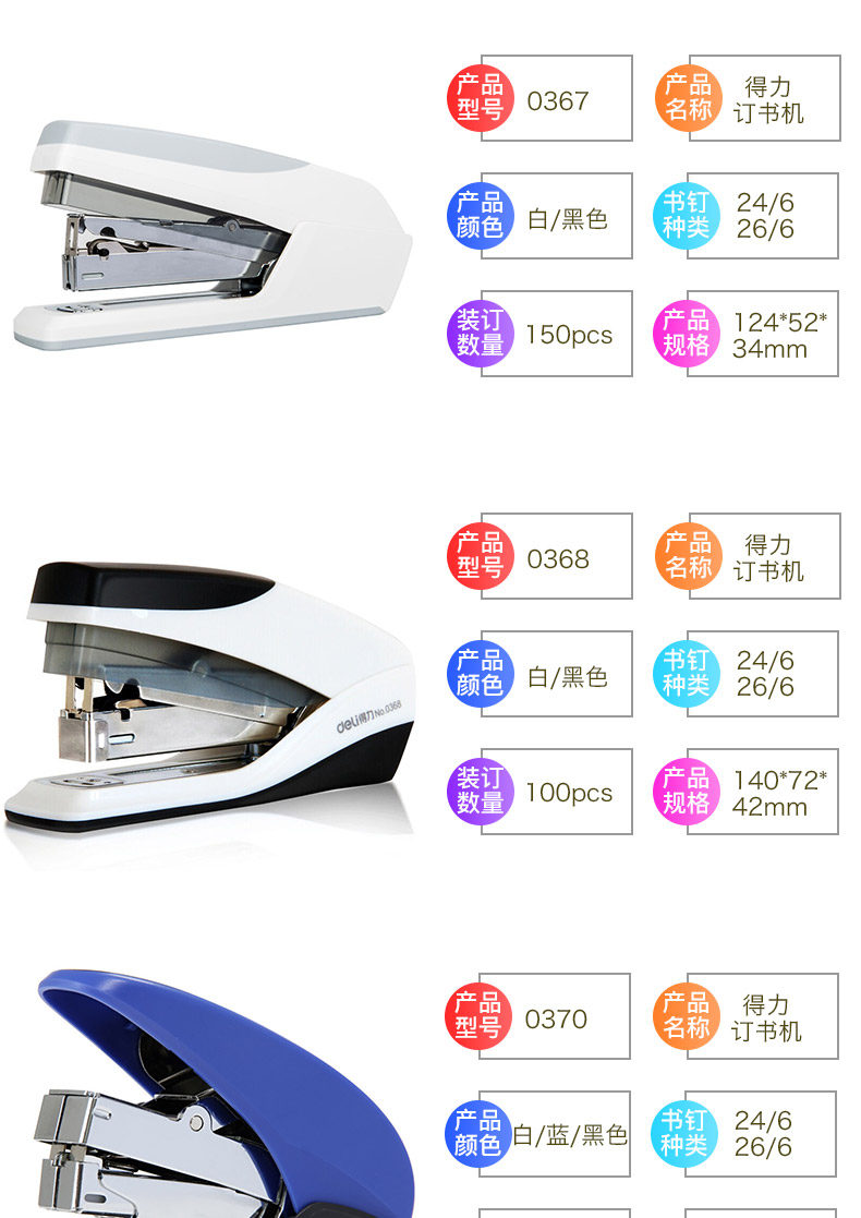 得力0307省力訂書機12#