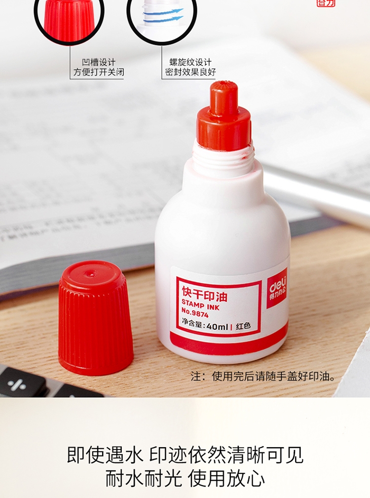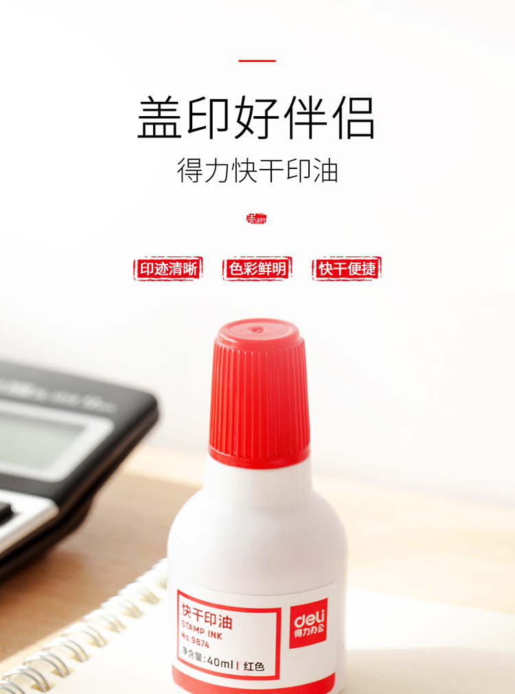得力9874快干清潔印油40ml紅*12