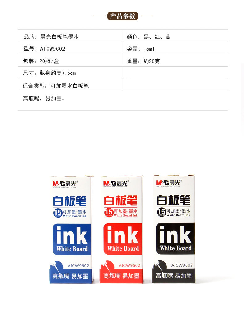 晨光15ml白板筆可加墨墨水AICW9602紅*20
