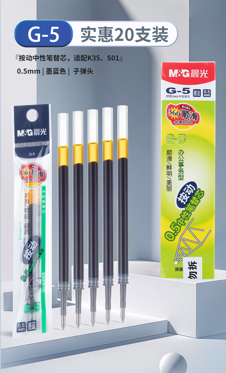 晨光中性筆芯MG6102藍色0.5 20支/盒