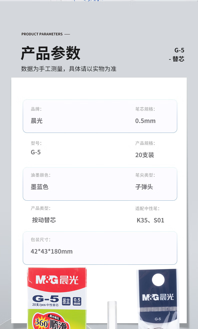 晨光最優(yōu)中性替芯MG6128藍0.7*20