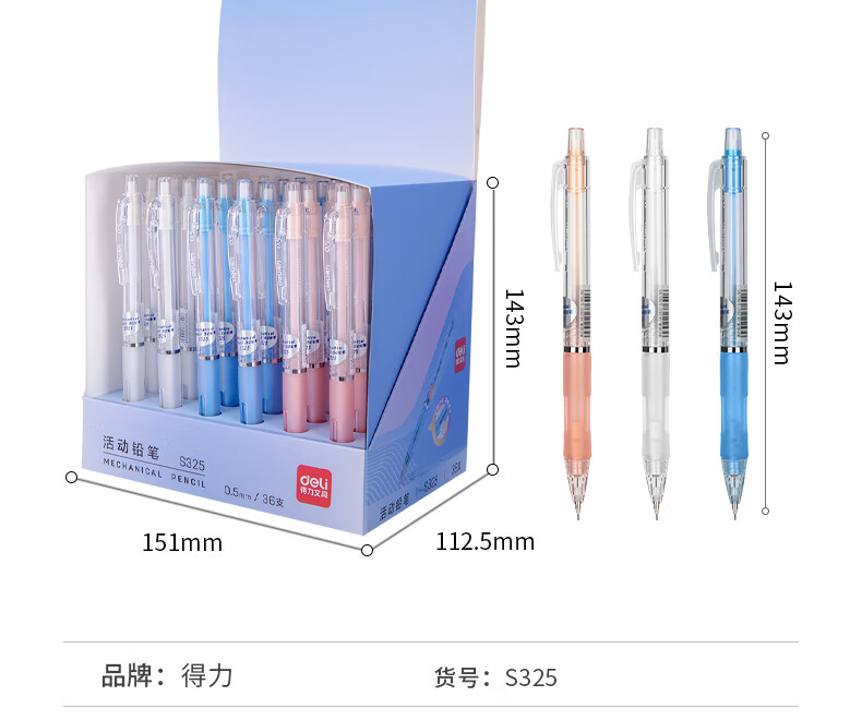 得力S372金屬活動鉛筆0.5MM(混)*24
