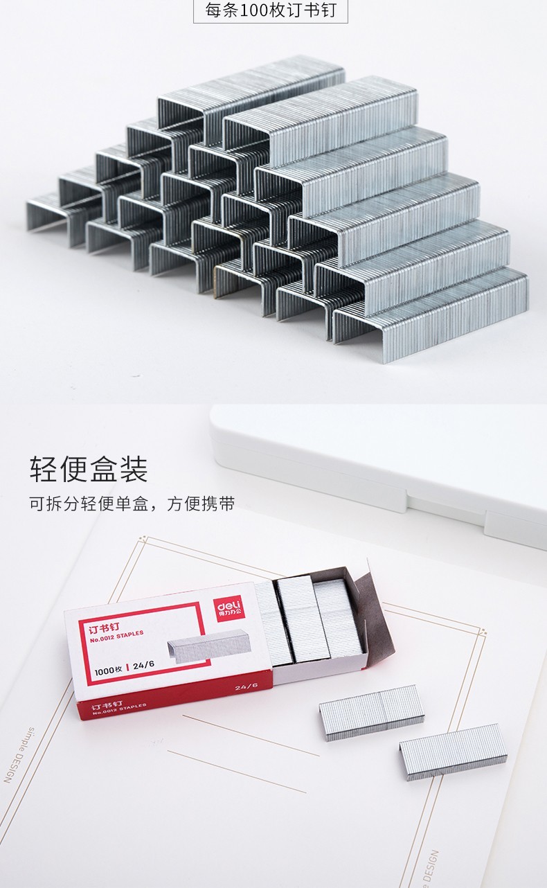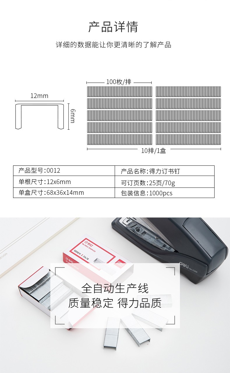 得力0011不銹鋼訂書釘12(1000枚/盒)